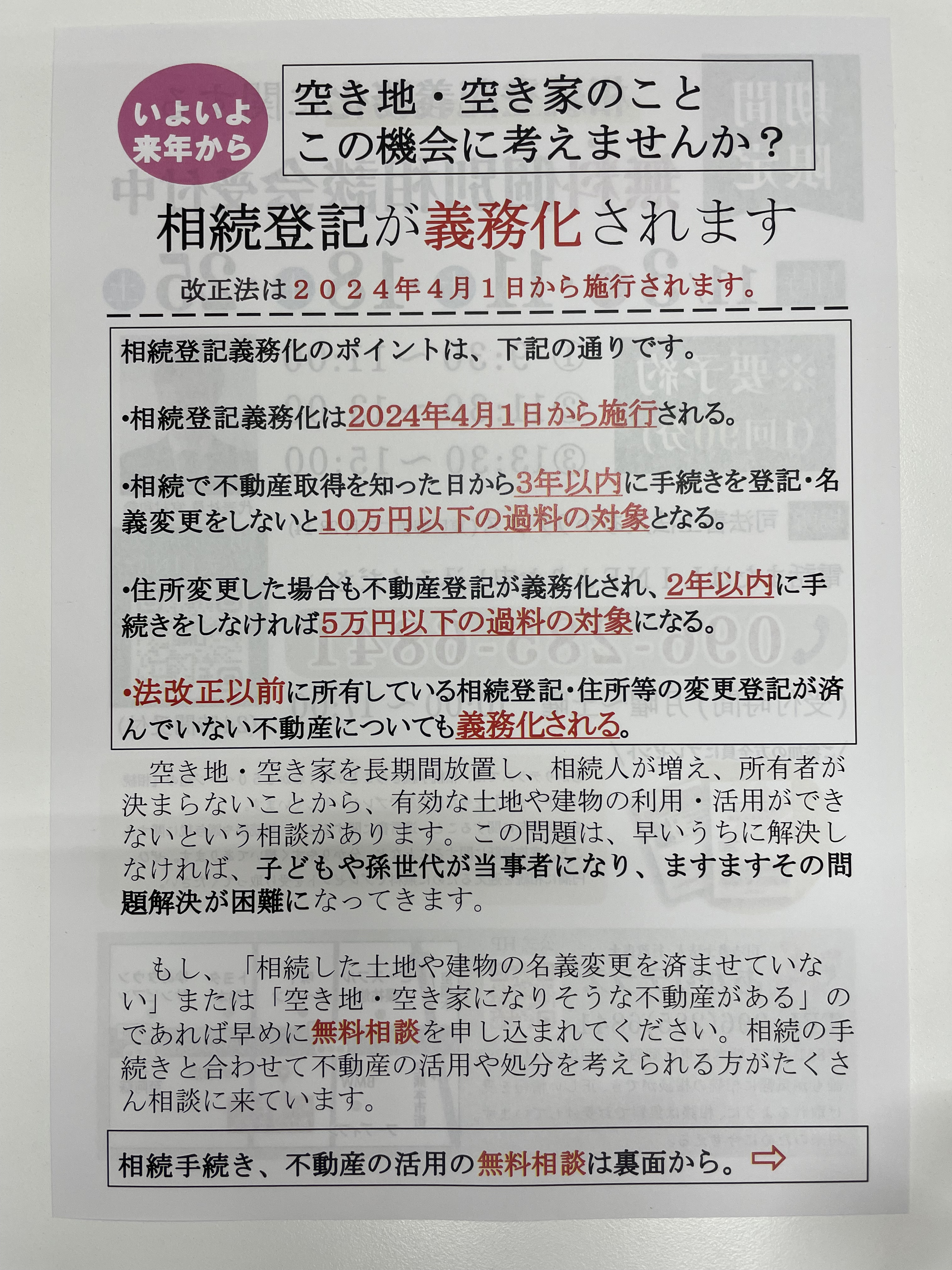 「ほほ笑み相続」相談会日程